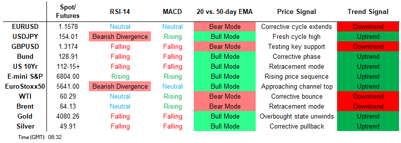 The downleg in Gold that started Oct 20 appears to have been a correction and has allowed an overbought condition to unwind. Price remains above a key support area at the 50-day EMA, at $3880.7. Clearance of this EMA would strengthen a short-term bear theme and signal scope for a deeper retracement. Initial resistance is at $4161.4, the Oct 22 high. A stronger recovery would refocus attention on $4381.5, the Oct 20 high and bull trigger.