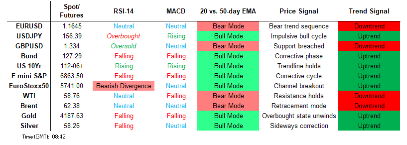 Recent weakness in USDJPY is considered corrective and the deeper retracement has allowed an overbought condition to unwind. Key short-term support to watch lies at the 50-day EMA at 153.58. A clear breach of the average would signal scope for a deeper retracement. Moving average studies remain in a bull-mode position, highlighting a dominant medium-term uptrend. A resumption of the uptrend would open 158.00.