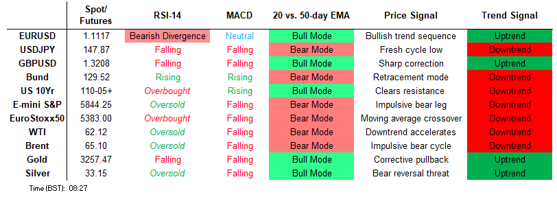 A bullish trend condition in S&P E-Minis remains intact and Monday’s strong gains reinforce bullish conditions. The contract has pierced an important resistance at 5837.25, the Mar 25 high and a bull trigger. This strengthens the bullish theme, paving the way for a continuation near-term. Sights are on 5896.25, a Fibonacci retracement. Initial firm support to watch lies at 5637.98, the 50-day EMA.