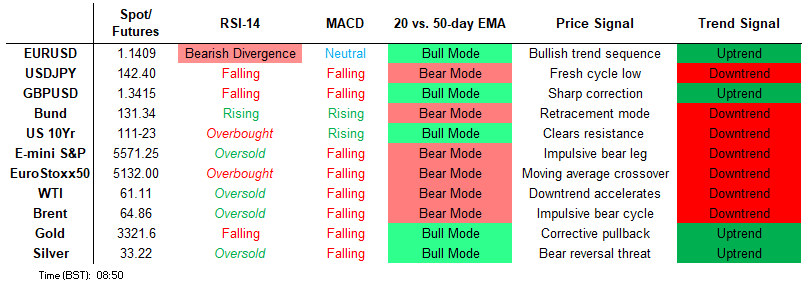 Bullish trend conditions in GBPUSD remain intact and Monday’s positive start to the week reinforces current conditions. A fresh cycle high yesterday highlights a resumption of the uptrend and maintains the price sequence of higher highs and higher lows. Moving average studies are in a bull-mode position too, signalling a dominant uptrend. Sights are on 1.3510, a Fibonacci projection. Support to watch lies at 1.3180, the 20-day EMA.