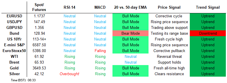 The trend theme in EURUSD remains bullish and the pair is trading closer to its recent highs. Resistance at 1.1743, the Aug 22 high, has recently been cleared reinforcing a bull cycle. This signals scope for 1.1829, the Jul 01 high and bull trigger. Clearance of this hurdle would confirm a resumption of the primary uptrend. Support to watch is the 50-day EMA, at 1.1635. A clear breach of this average is needed to signal scope for a deeper retracement.