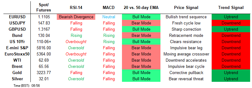 The bullish trend condition in S&P E-Minis remains intact and today’s strong start to this week’s session reinforces bullish conditions. The contract has pierced an important resistance at 5837.25, the Mar 25 high and a bull trigger. This strengthens the current bullish theme, paving the way for a continuation near-term. Sights are on 5896.25, a Fibonacci retracement.Initial firm support to watch lies at 5628.71, the 50-day EMA.