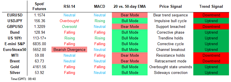 The trend set-up in USDJPY is bullish and the latest shallow pullback appears corrective. The pair has recently entered overbought territory and a deeper retracement, if seen, would allow this condition to unwind. Support to watch is 155.16, the 20-day EMA. Moving average studies remain in a bull-mode position, highlighting a dominant uptrend. A resumption of the trend would open 158.00.