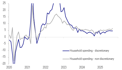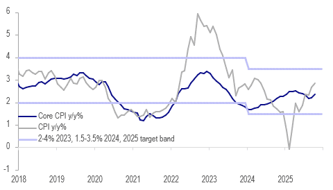 Headline inflation was its highest since April 2024 but it has been boosted by base effects following the expiry of temporary electricity price cuts, which is likely to be the case into Q1 2026.