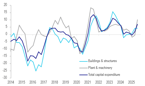 The increase in plant & machinery expenditure was the highest in almost 21 years. Similar growth rates have contributed around 0.3pp to GDP that quarter.