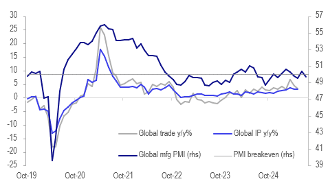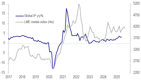 Metal and wool prices as well as the Baltic Freight Index signal that global IP growth should remain close to recent rates around mid-year even if it does moderate after frontloading of exports.