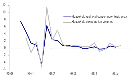 Q2 real spending saw strength from recreation (+1.8% q/q), hotels & restaurants (+1.6%), transport (+1.5%), household goods (+1.5%), health (+1.0%) and food (+1.0%), while alcohol and tobacco fell for the 14th straight quarter and clothing & footwear was down 2.0% q/q.
