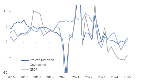 Net exports detracted 0.1pp from growth due to slightly higher goods & services imports but a sharp 8.5% q/q drop in services exports offsetting the 3.6% q/q rise in goods shipments.