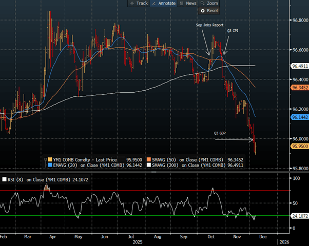 Options : Close significant option expiries for NY cut, based on DTCC data: 155.00($1.94b), 157.00($895m). Upcoming Close Strikes : 155.00($1.22b Dec 8 ), 156.00($1.49b Dec 8 ), 156.00($740m Dec 10) - BBG.