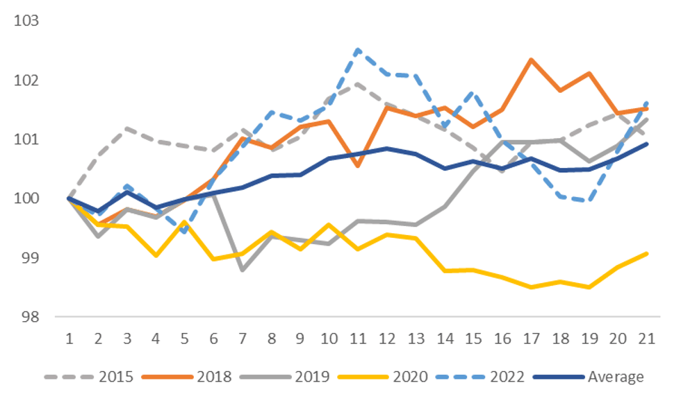 - Beyond this 5 day period though, higher USD/CNH levels typically follow. On average the pair is still nearly 1% higher in these episodes, with only the 2020 Covid period an outlier.
