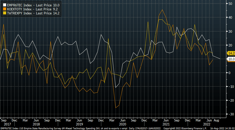 Fig 2: Empire Survey Tech Spending Intentions Versus South Korea & Taiwan Export Growth