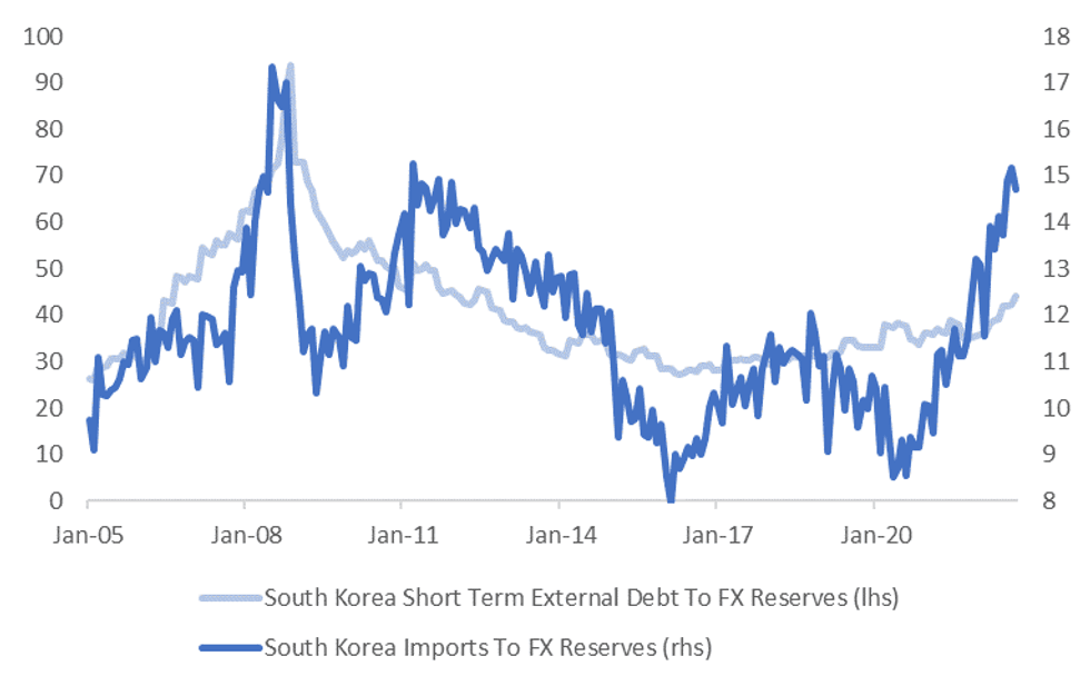 Fig 1: South Korean Imports & Short Term External Debt Ratio To FX Reserves