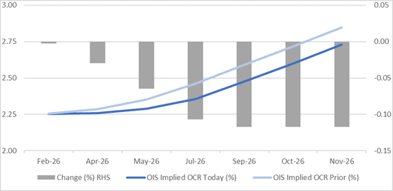 Figure 1: RBNZ Dated OIS Current vs. Prior (%)