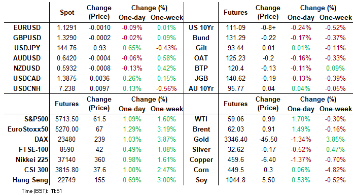 Treasuries are bear flatter on the day reflecting advances in UK-U.S. trade talks ahead of an announcement today at 1000ET plus yesterday’s suggestions that the U.S. is set to relax export restrictions for chips.