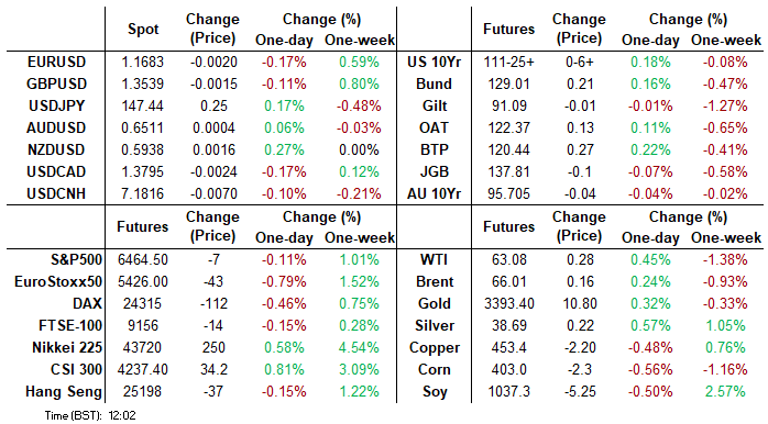 Treasuries are mildly firmer ahead of today’s geopol-focused session with Oval Office meetings with Trump, Zelenskyy and EU leaders.