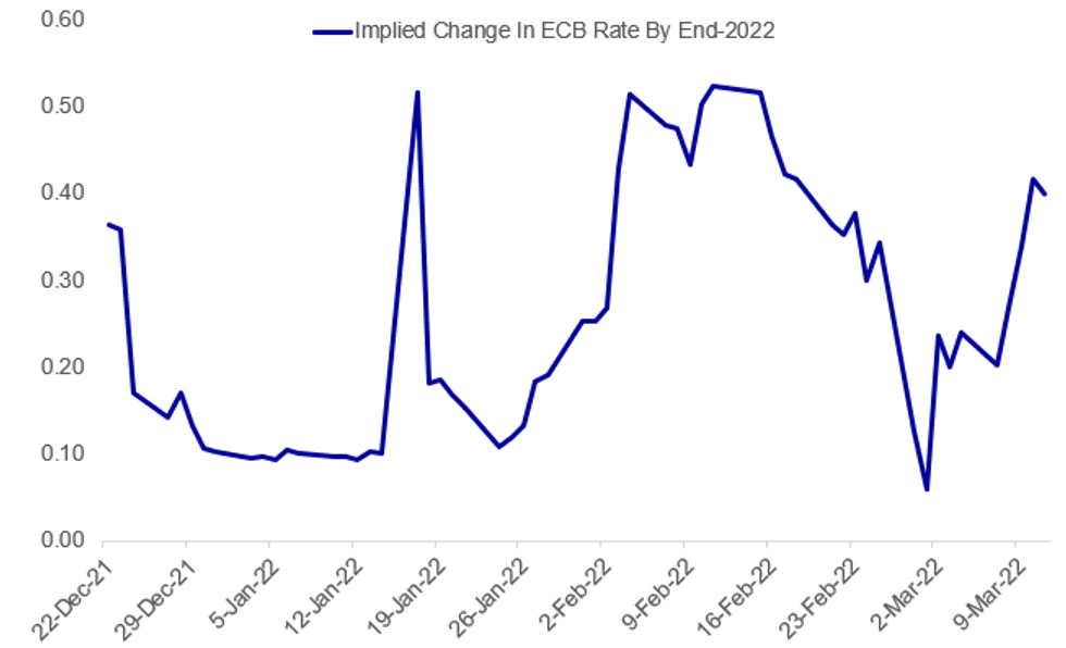 ECB (FT): The FT has released a sources story overnight following yesterday's ECB meeting. "Several ECB governing council members argued at Thursday's meeting that it should wait before speeding up the withdrawal of its bond-buying stimulus due to uncertainty over the economic fallout from Russia's invasion of Ukraine. But they were outnumbered by more hawkish voices." On source reportedly told the FT "the more hawkish voices calling for more immediate action on inflation outnumbered those advocating patience by 15 to10." This adds to the Reuters story yesterday afternoon which stated that "only a handful had called for keeping the previous guidance for purchases to run at least until October" and that "all 25 policymakers also agreed that the 1.9% rate of inflation now expected for 2024 was compatible with the bank's inflation target."