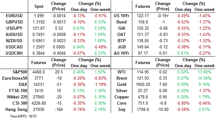 SNB policy decision inline with expectations, with the bank keeping headline rates unchanged, pushing their inflation forecasts higher (and GDP projections lower) while retaining their language and view on the CHF.