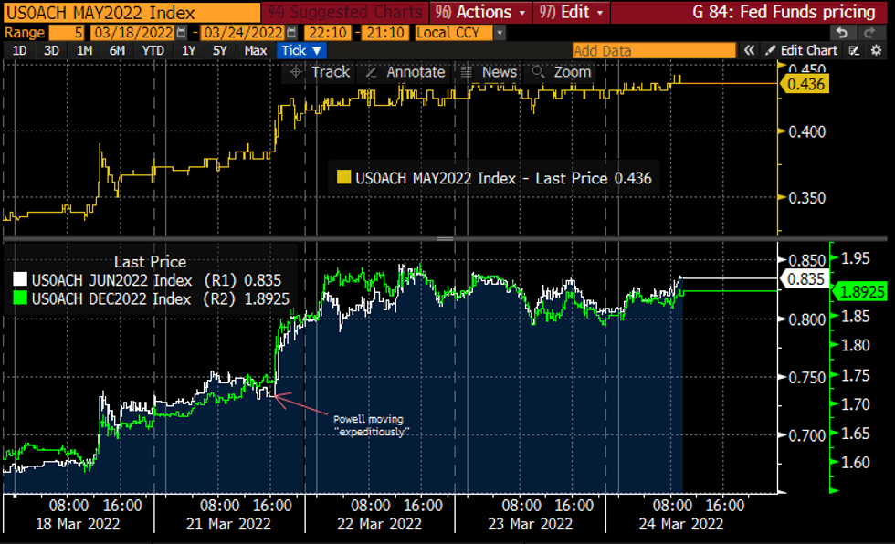 Cumulative hikes from FOMC-dated Fed FundsSource: Bloomberg