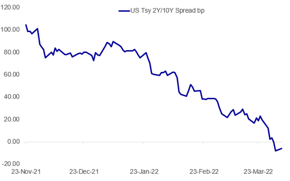 Divergence between USTs, Bunds and gilts in the Asian session saw the UST curve sell-off with 2s10s which overnight reached a low of-9.5bp, the most inverted level since 2006. US 5s30s went even further, themost inverted since September 2000, hitting a low of 15.2bp overnight. Through the European session we have seen Bunds, Treauries and gilts all drift higher.