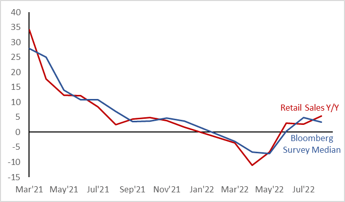 Figure 1: Chinese Retail Sales Y/Y Beat Expectations