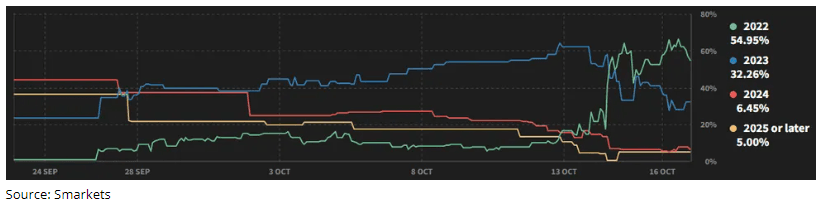 Figure 1: Betting Market Implied Probability of Year Liz Truss Leaves Office