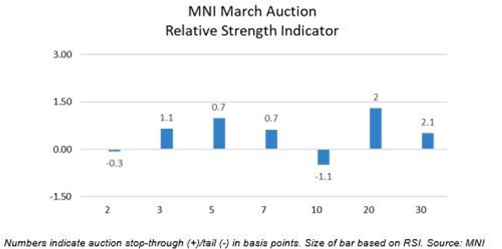 - This comes following relatively strong coupon auctions in March, in which 5 (of 7) sales traded through - each receiving a positive reading on MNI’s Relative Strength Indicator.