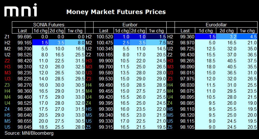 Global STIR futures continue to move higher as markets reassess central bank hiking paths despite the higher than expected inflation prints from Italy and some German regions.