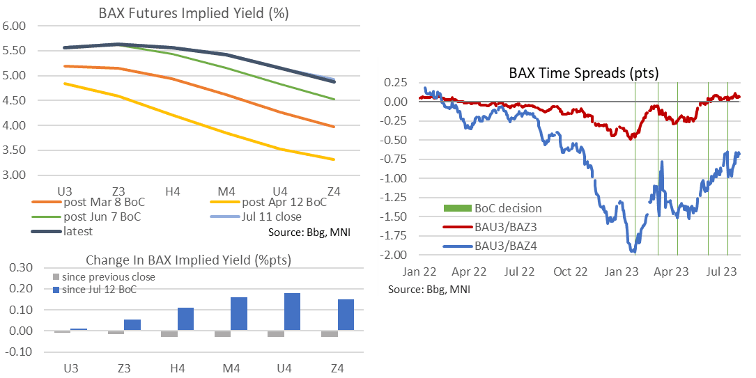 The primary trend direction in EURGBP is down and recent short-term gains are considered corrective. Key near-term resistance has been defined at 0.8658, the Jun 28 high. A break of this level would resume the recent uptrend and signal scope for a climb towards 0.8719, the May 23 high. On the downside, a deeper pullback would instead expose the bear trigger at 0.8518, where a break would confirm a resumption of the downtrend.