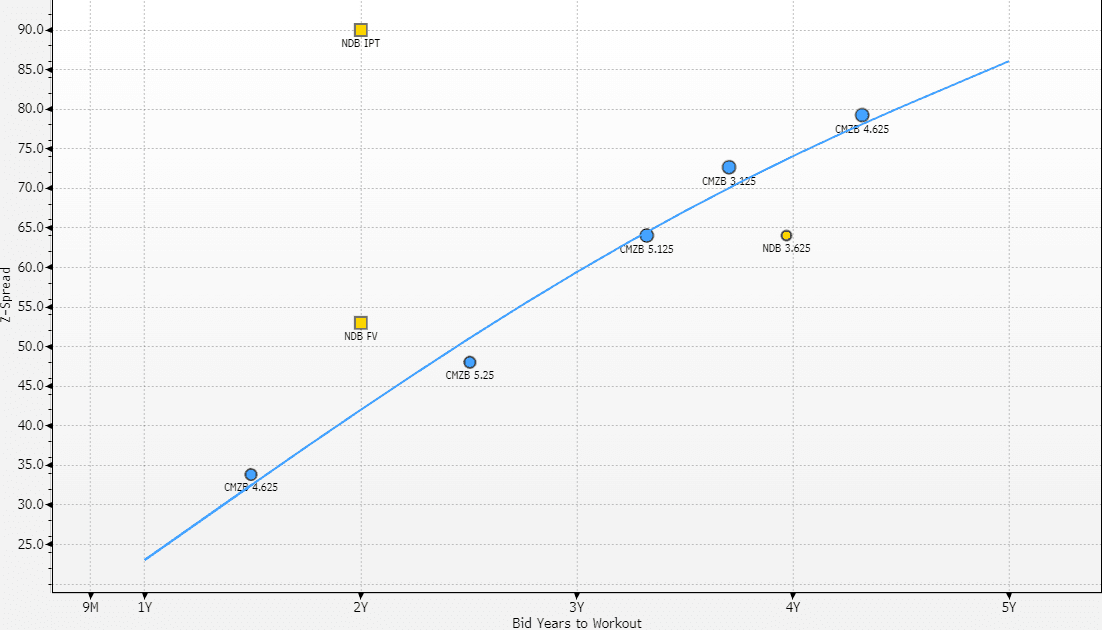• First NC Sr Non-Pref from NDB, we think a bullet with same workout price around +38
