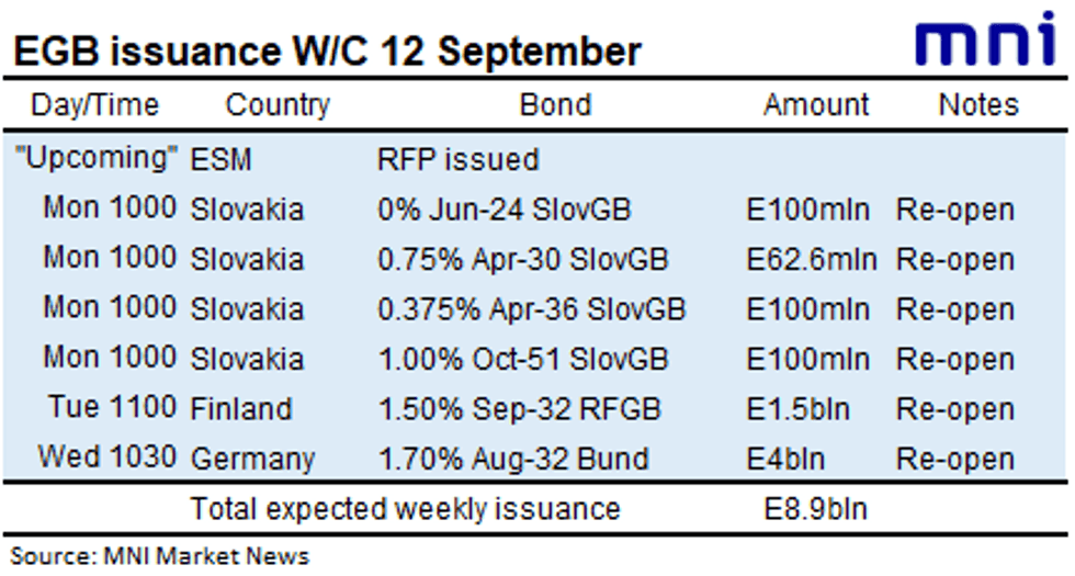 For a full calendar of all announced EGB/EU/ESM/EFSF auctions see the MNI EZ/UK Bond Supply Calendar here.