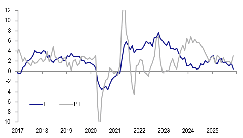The November labour market data were consistently softer, apart from the stable unemployment rate. However, the data are volatile and averages need to be considered and they were mixed. The RBA continues to see the jobs market as “a little tight”. Governor Bullock said that the Board is likely to discuss a prolonged pause or hiking in 2026 dependent on the data as inflation and capacity pressures are rising. Given the volatility, this release is likely to be consistent with the Board wanting more information.