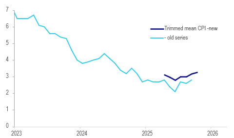 Australia CPI trimmed mean y/y% - new vs old monthly series