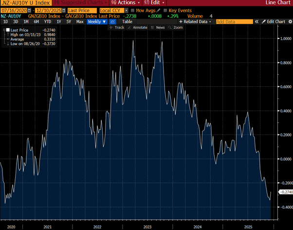 NZGBs closed 4-6bps cheaper across benchmarks.