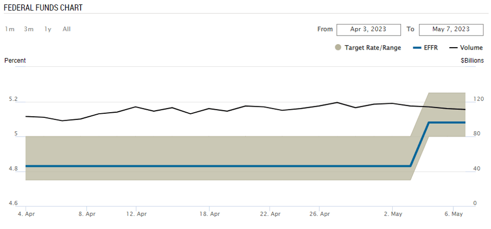 * Daily Overnight Bank Funding Rate: 5.06%, no change, volume: $281B