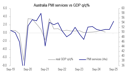Australia GDP q/q% vs S&P Global services PMI