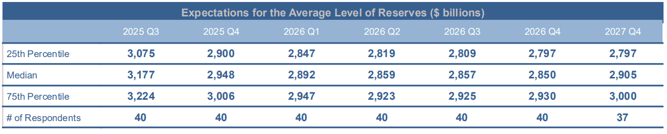 At the point SOMA runoff concludes, it's expected that reserves plus overnight reverse repo will run around $3T. (That's close to the July survey although that one showed under $2.9B of reserves and $125B of ON RRP).