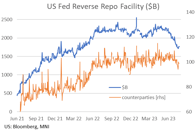 - Reverse repo operation usage held exactly the same as Friday at $1771B with an unchanged 99 counterparties.