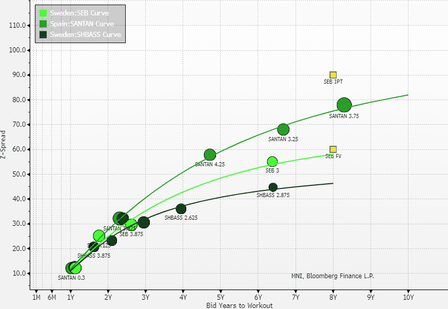 Our FV would imply the SEB curve is 1-2bps steeper from 6.4 -> 8 years than SEB, which seems reasonable. SANTAN is only included below to give some context on curve shape.
