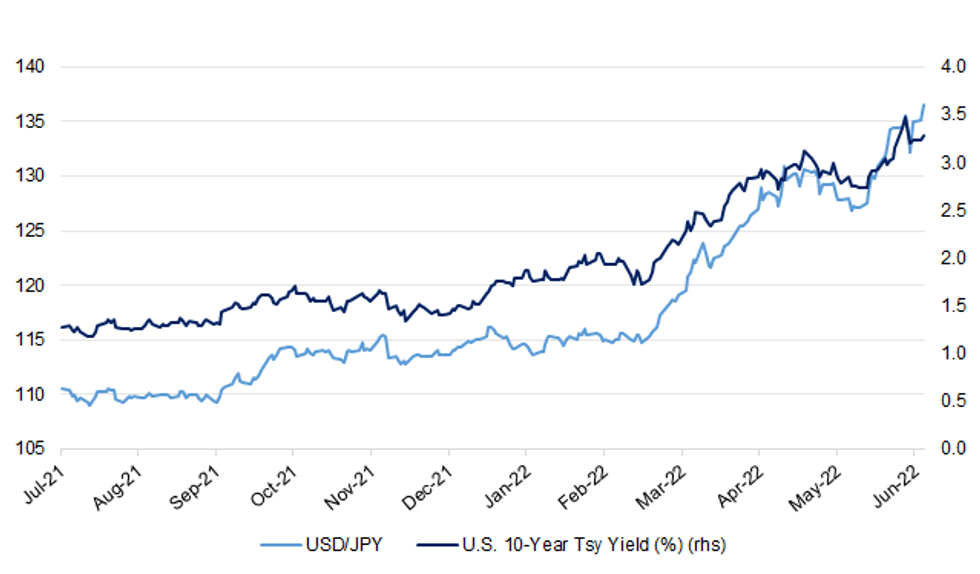 Fig. 1: USD/JPY vs. U.S. 10-Year Tsy Yield (%)