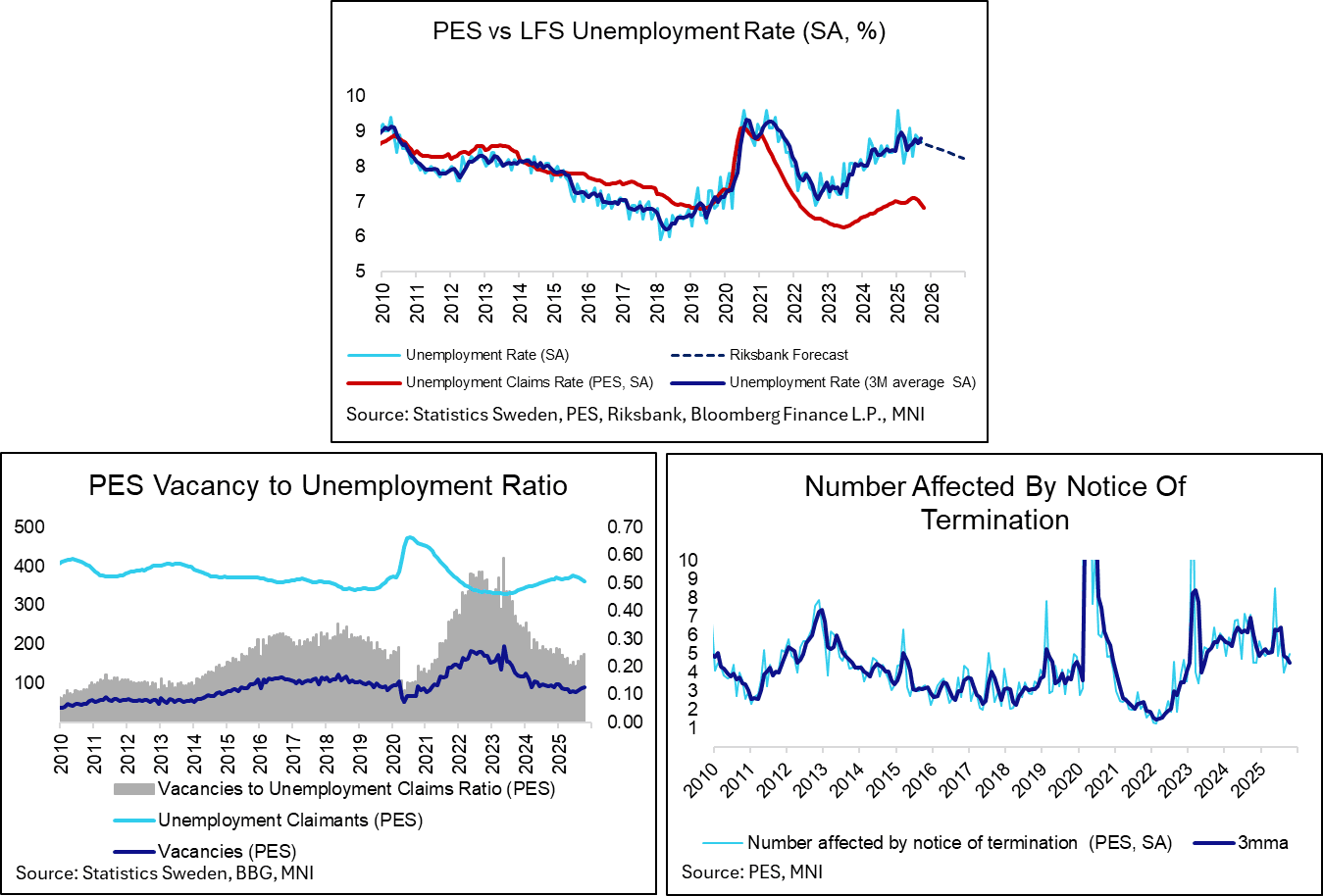 The Swedish labour market is showing signs of improvement, according to Public Employment Service data for October. This shouldn’t impact the Riksbank outlook – it’s rather confirming that the current policy stance is supporting the economic recovery. The policy rate is expected to remain at 1.75% for “some time”. However, we continue to think that the risk of a hike back to 2% is greater than the risk of another cut over a 12-month horizon.