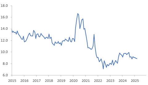 The headline figures for April signalled that the labour market remains tight with job growth keeping up with the labour force, thus both advertised salaries and the WPI showed a pickup in 2025. The RBA looks at other labour indicators and they have been mixed in Q1/April. It is widely expected to cut rates 25bp on May 20 but recent jobs and wages data are likely to mean that it maintains its cautious tone regarding future easing.