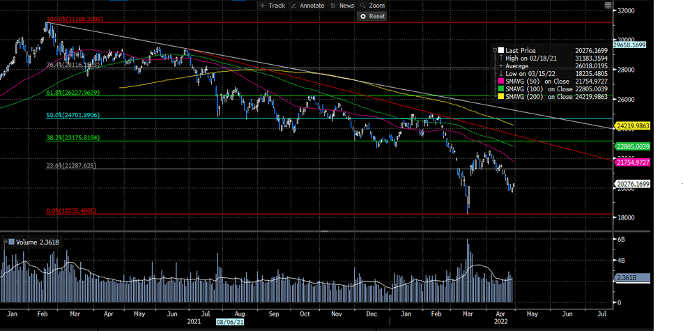 - On the topside, resistance to watch stands at 21.287.60, which corresponds to the 23.6% Fibo retracement of the 18,235.50 - 31,168.30 range.