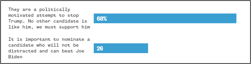 Figure 1: “Which statement comes closer to your view on the investigations into Donald Trump and the Republican nomination for president?”