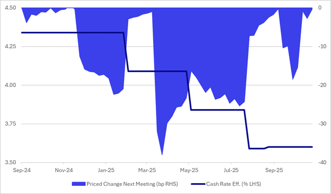 Figure 1: RBA-Dated OIS – Cash Rate Vs. Priced Change Next Meeting