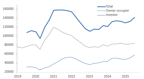 There was a strong rise in the number of new dwelling loans and their value in Q3 as house price inflation rose. The recovery in home lending began in Q2 after the RBA began easing in February and the 75bp to August appears to have contributed to the sharp rise. The Board is unsure how restrictive policy is and remains cautious. It noted this month that “the housing market is continuing to strengthen, a sign that recent interest rate reductions are having an effect”. The lending data is consistent with this and likely to add to its caution about easing further.
