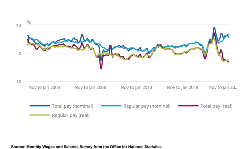 • A strong uptick in payrolled employees of +98k was recorded in February, after a substantial downwards revision to +42k (from 102k) in January. This, alongside the employment rate edging up 0.1pp and inactivity down 0.2pp on the quarter implies an increase in returns to the workforce, namely 16-24 year-olds, students and retirees according to the ONS.