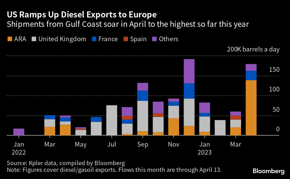 US has increased diesel exports to Europe as they look to rebuild inventories following the strike disruption to French refineries. Refineries are restarting in France but the return to full operations can take weeks. The return of US refiners from the heavy maintenance season and weak domestic demand has likely aided the higher exports.