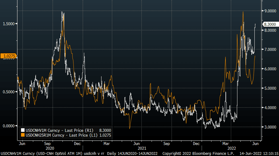 Fig 1: USD/CNH 1 Month Implied Vol and Risk Reversal
