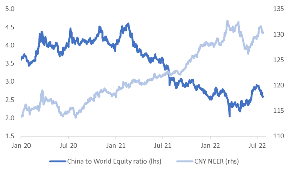 Fig 1: CNY NEER & China Relative Equity Market Performance