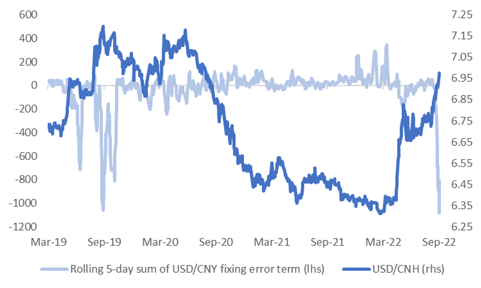 Fig 1: USD/CNY Fixing Error Term to Fresh Wides